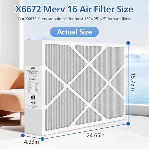 Specification: 1 Pack X6672 16x25x5 MERV 16 Filter Compatible with Lennox X6672 and Lennox HCC16-28 Healthy Climate Carbon Clean MERV 16 Home Furnace Filter for HVAC System, Part Number HCF16-16, HCF16-10