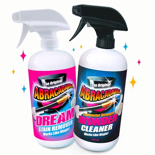 Abracadabra Contractor Strength Wonder Cleaner – As Seen on TV – 16 fl oz – Gunk & Build up Remover – Removes Tar, Adhesives, Gum, Stickers, Sap, Oils & More on Most Surfaces – Better Stronger Faster and Abracadabra Dream Stain Remover – 16oz Instant Stain Treatment for Fresh Spills & Set-In Stains, Kid & Pet Safe, Zero Bleach or Peroxide – For Clothing, Upholstery & Carpet – the perfect prewash