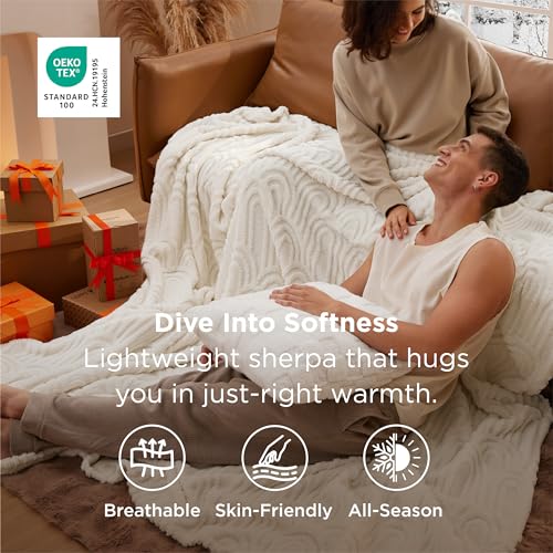 Bedsure GentleSoft Cozy Throw Blanket for Couch – Soft Spring Boho Blankets for Women, Fuzzy Fleece Throw for Beds, Boho Home Room Decor Aesthetic, Gifts for Women Teen Girl, Off White, 50×60 Inches