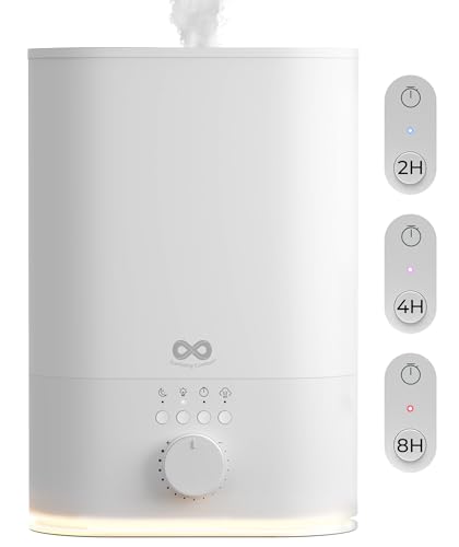 Specification: Everlasting Comfort 6L Top Fill Humidifier for Bedroom – Quiet, Easy to Fill & Clean, 60HR Runtime, Night Light, Timer, Ultrasonic Cool Mist, Auto Shut-Off, Essential Oil Compatible – White