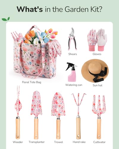 Specification: Gardening Tools, 10-Piece Gardening Gift Set for Women, Rust-Proof & Heavy-Duty Tools with Floral Organizer Bag, Fashionable & Thoughtful Gift for Garden Women (Pink)