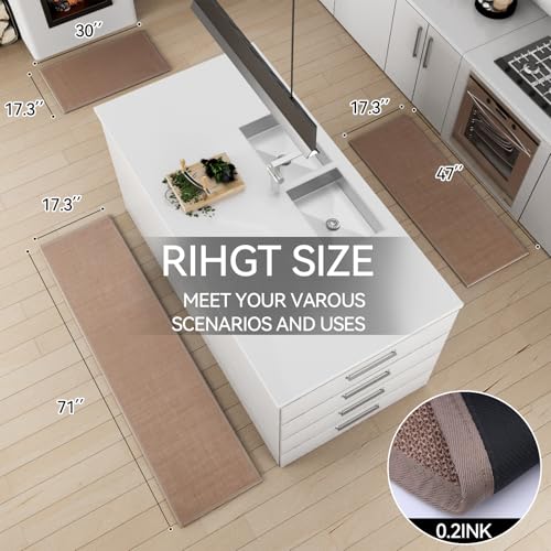 Kitchen Mat Set of 2 PCS, Cushioned Non Slip Rugs for Kitchen Floor, Absorbent Runner Comfort Standing Mats Washable for Kitchen, Office, Home (Camel, 17.3″x47″+17.3″x30″)
