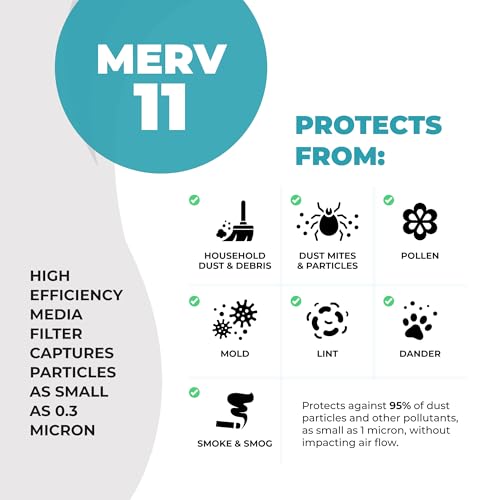 High-Performance Media Filter – With a MERV 11 rating, this AC filter 20x25x4 effectively captures a wide range of airborne particles and impurities as small as 1.0-3.0 microns. It’s an excellent choice for improving indoor air quality and ensuring your HVAC system operates efficiently.