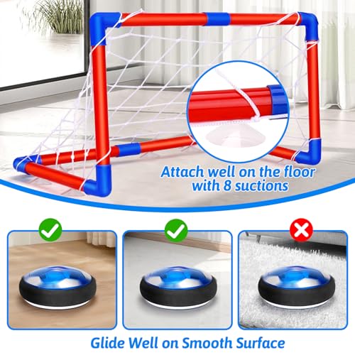 Specification: Qirptey 3 in 1 Hover Soccer Ball Toddler Hockey Set with LED Lights Indoor Toys for Kids Soccer Gift for Boys 6-8 8-12 Kids Sports Soccer Games 3 4 5 6 7 8 Year Old Boy Age 4-8 Birthday Gift
