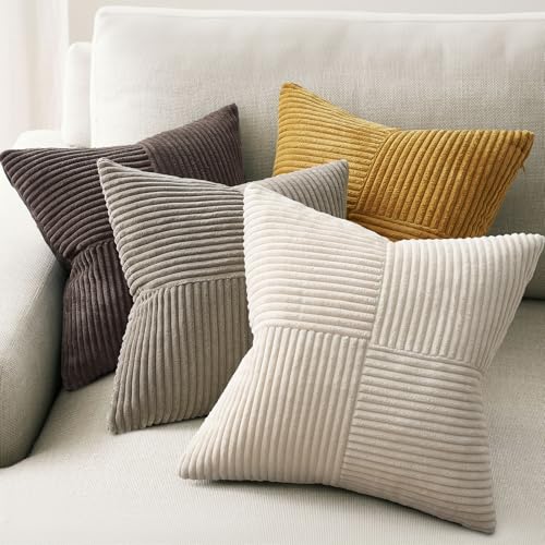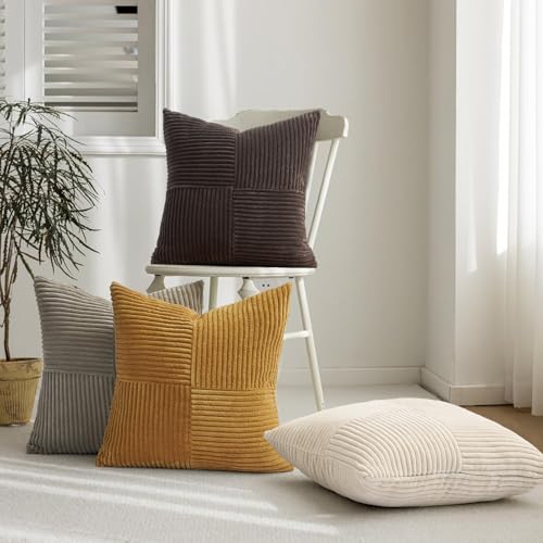 Specification: Topfinel Fall Vintage Brown Pillow Covers Set of 4,Velvet Gold Brown Cushion Covers with Corduroy,Soft Accent Pillowcases for Couch,Bed,Living Room and Outdoor Home Decor 20×20 Inch