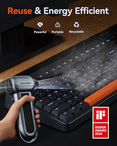 Reuse and Cost-Efficiency: Made from durable materials, the WOLFBOX air duster offers a long battery life and can be reused more than 500 times. It’s a sustainable and economical alternative to single-use compressed air cans, much better choice for your wallet and the planet.