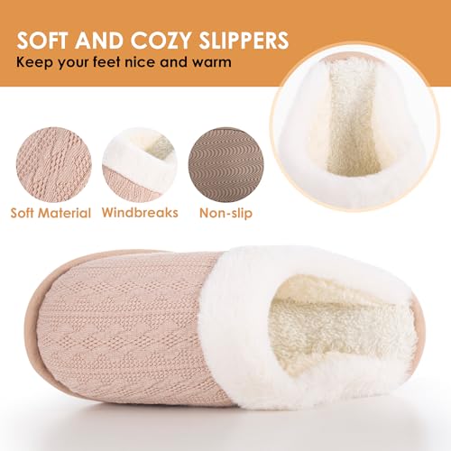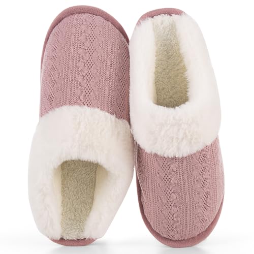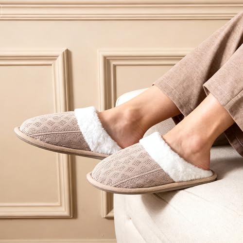 Specification: Women’s Cozy Knit Slippers with Faux Fur Lining Memory Foam – Non-Slip Rubber Sole Indoor/Outdoor Winter House Shoes for Warmth and Comfort